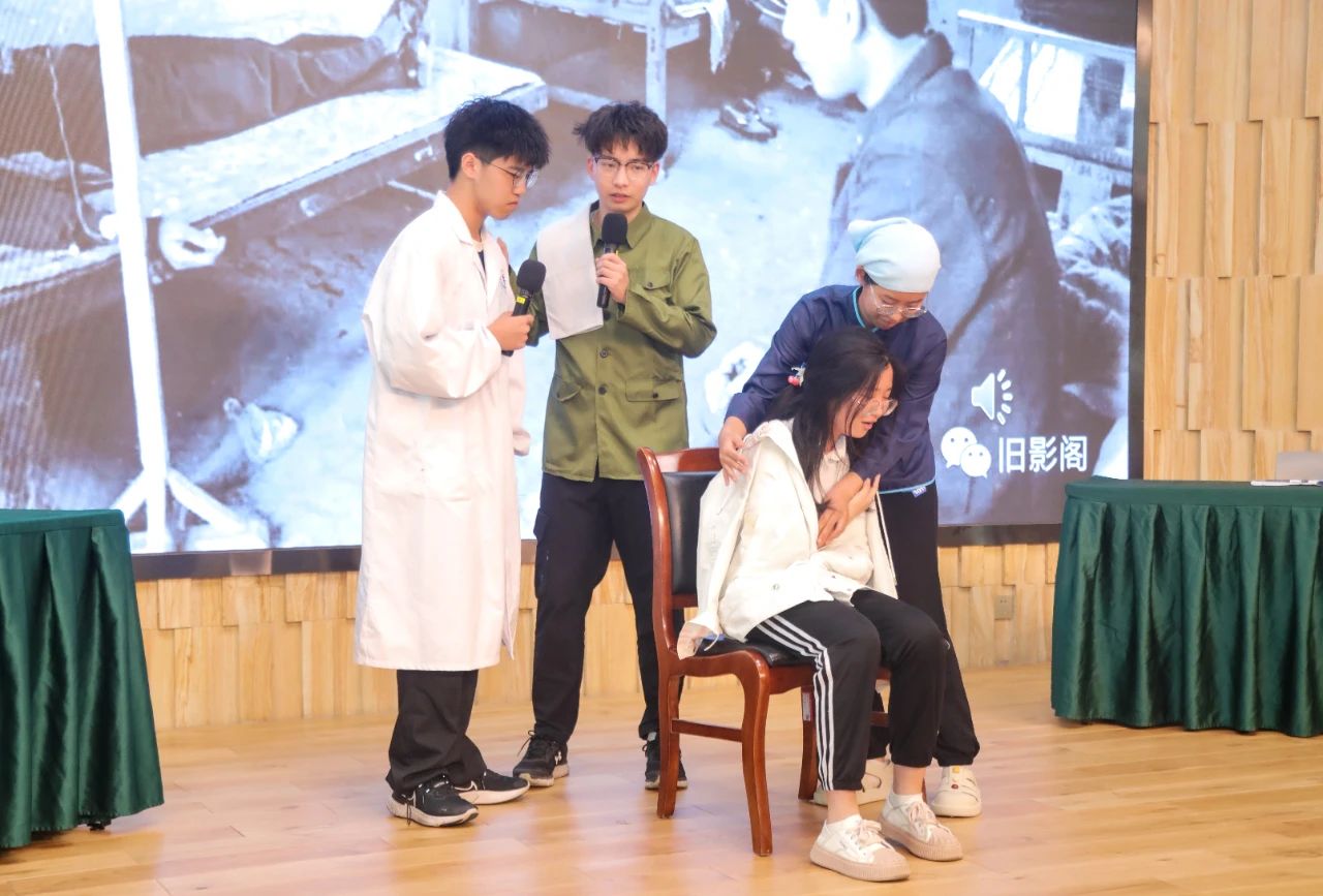 基础医学院的同学以舞台剧《建国后消灭血吸虫病的斗争》,再现新中国成立初期众多医学家与血吸虫病顽强斗争的壮阔史诗;通过微电影《医路同行、中国有我》,以“重生”视角再现中华人民共和国史上一代代医者协同作战、赓续薪火,从无到有构筑中国人民健康之盾的光辉岁月。药学院的同学带来舞台剧《时光药旅:巡礼里程碑 启航新纪元》,巧妙构想了一位迷茫的药学大一新生,在领略药学界一系列标志性成果后找到学术信仰与奋斗动力的故事。