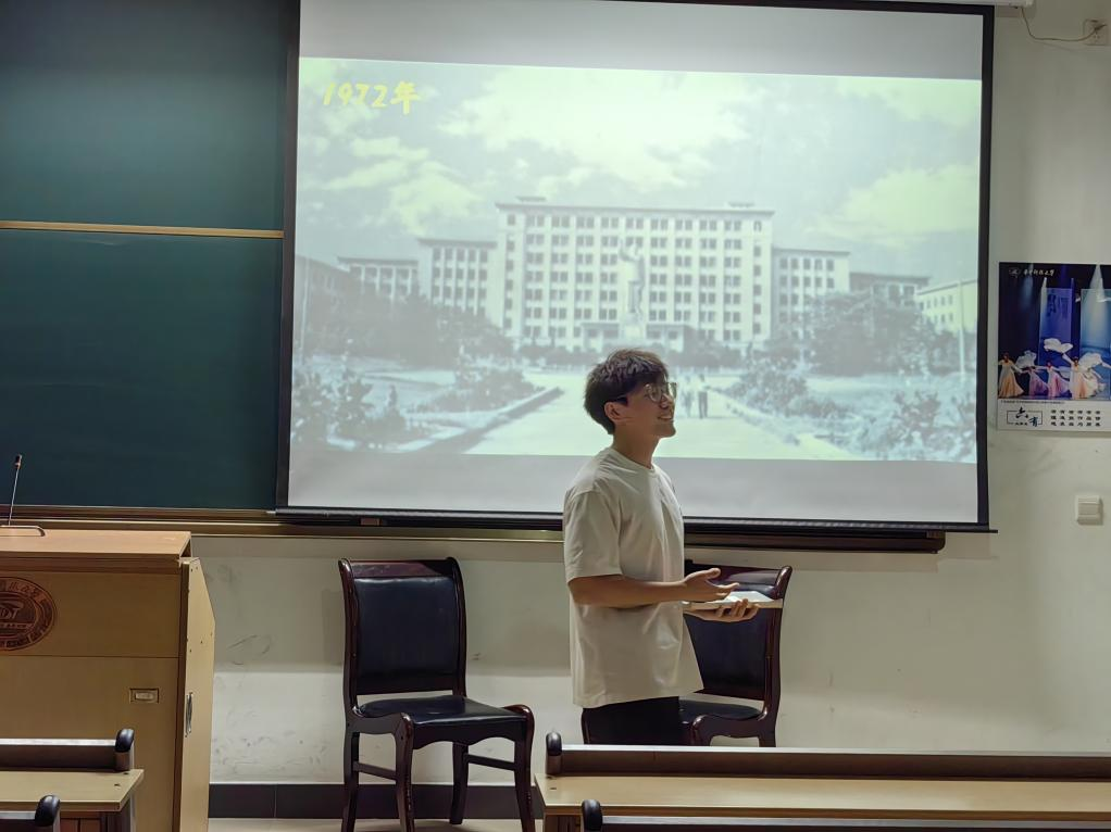 “你听说过‘激光’吗?”饰演主任的同学一句发问,将观众带了回那个年代,同学们通过还原当时情景,生动地向大家展示了黄德修教授是如何走上“追光”之路。
