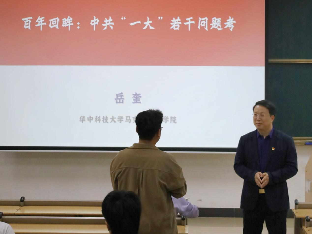 (通讯员:丁怡卓)4月3日晚,华中科技大学马克思主义学院开设的“四史”系列选修课程《百年中国》于东九教学楼C203继续开讲。课程第四讲以“百年回眸:中共‘一大’若干问题考”为主题,由马克思主义学院院长、教授岳奎主讲。