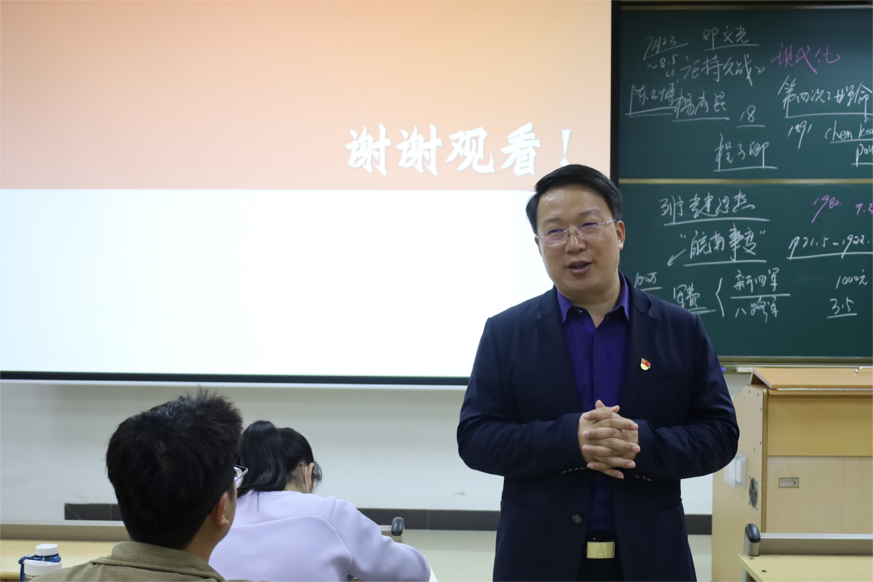岳奎教授以“中共一大是什么时候召开的?”这一问题为切入点,从“中国共产党诞生日的由来”“‘一大’7.23召开的提出”“‘一大’开幕日期考证”“‘一大’党纲中的蹊跷”“‘一大’闭幕日期考证”五个方面,带领同学们穿越时空,从历史事件考证的全新角度重温这件开天辟地的大事。