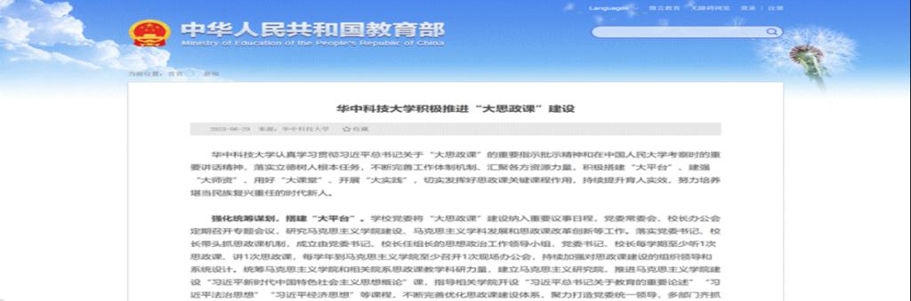 图为2023年6月29日教育部网站推介我校“大思政课”建设工作特色亮点经验