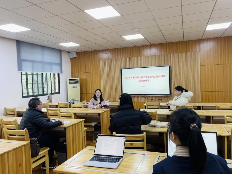 (通讯员:万娟)2月29日下午,新时代中国特色社会主义理论与实践(以下简称“中特”)教研室于东七楼205会议室召开集体备课会。中特教研室专职教师蔡孝恒、邹旭怡、张冬静、赵建建、朱文婷、周浪参与本次会议。会议由教研室主任蔡孝恒主持。