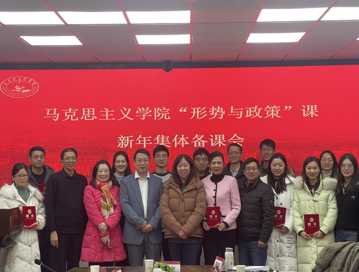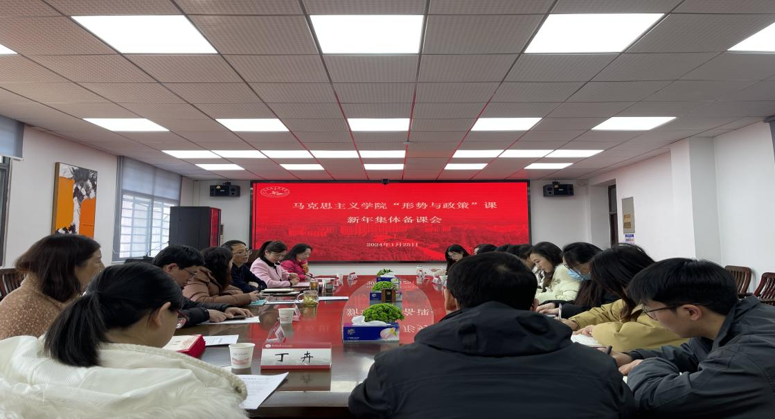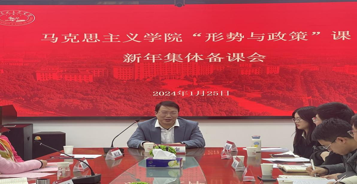 1月25日下午,形势与政策教研中心在东七楼203会议室召开新年集体备课会。马克思主义学院党委书记刘雅然、院长岳奎、副院长沈昊驹,以及部分来自主校区和同济校区的任课教师参加会议。会议由形势与政策教研中心主任吕洪良主持。