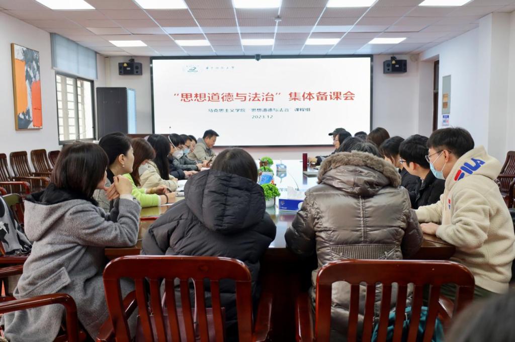 12月28日下午,思想道德与法治(以下简称“德法”)课程组于东七楼203会议室召开集体备课会。马克思主义学院副院长李建国,梁红、赵志坚、阮丽萍等二十余名专职及双聘老师参加会议。会议由教研室主任万晶晶主持。