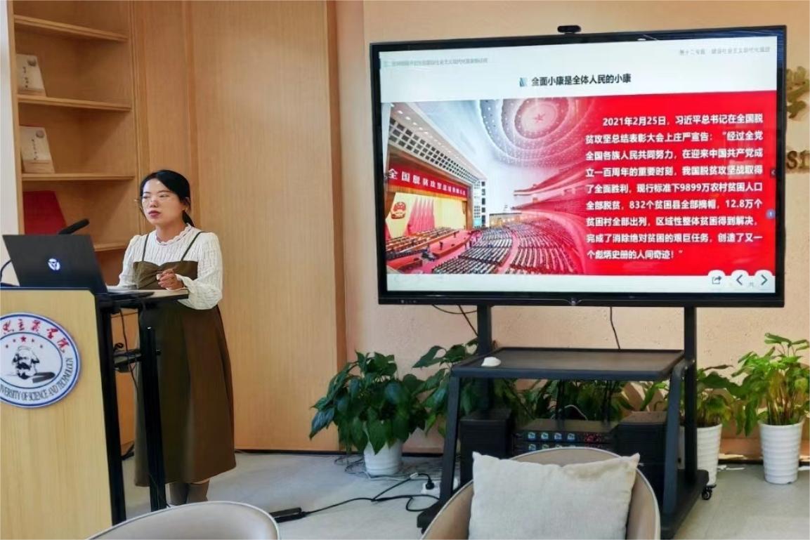 随后,备课会进入青年教师说课环节。赵耀围绕“建设社会现代化强国”主题进行说课试讲,与会教师对其进行点评并对教研室整体工作提出建议。