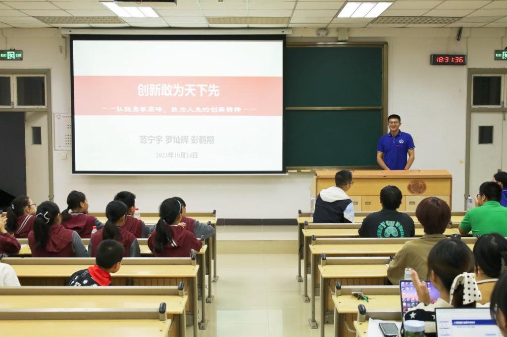 (通讯员:鄢楚)10月24日晚,《星河灯塔——伟大的科学家精神》沉浸式思政课的第六次课程于东九教学楼C201开讲。本次课程的主题为“创新敢为天下先——勇攀高峰、敢为人先的创新精神”,由马克思主义学院思政课教师范宁宇、彭鹤翔以及计算机科学与技术学院EDA团队博士生罗灿辉共同主讲。主讲教师们通过理论讲解和案例分析,引导学生们深入理解创新精神的内涵以及创新精神在我国古代四大发明和现代高新技术中的体现,同时启发大家在实践中发扬创新精神,通过团队合作、跨学科交流和创新性实验等方式培养和提升创新能力。