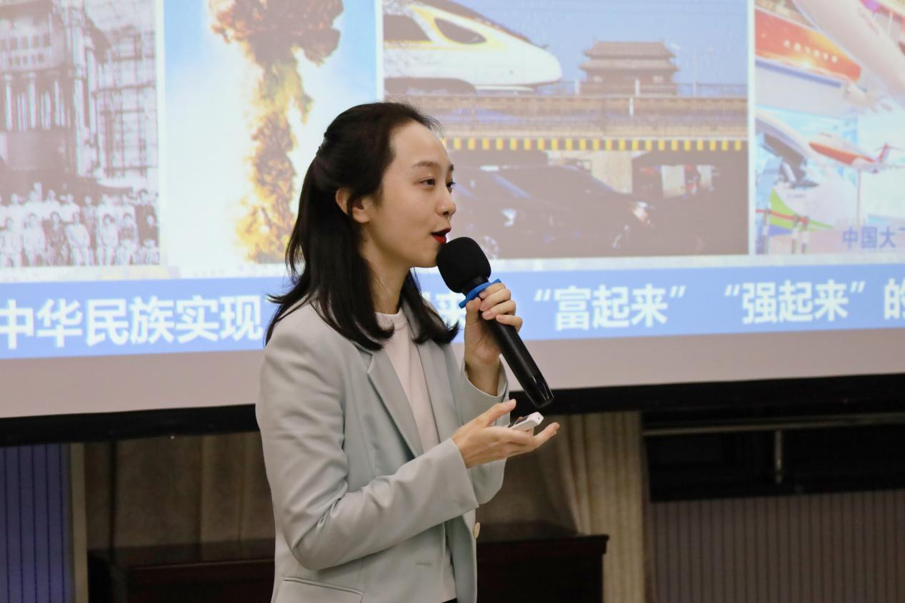 课程伊始,熊雅妮老师为同学们讲授课程的第一部分“现实意义:新时代何以需要大力弘扬科学家爱国精神”。熊老师首先从当前国际形势和卡脖子技术等层面出发,以“华为Mate60发布”事件为切入点,详细讲解了以科技自立自强应对国际战略博弈的重要性。通过对孟晚舟事件背后技术封锁和国际竞争的分析,熊老师引导学生们从国际形势、国家发展、个人发展三方面认识科技创新的重要性与必要性。