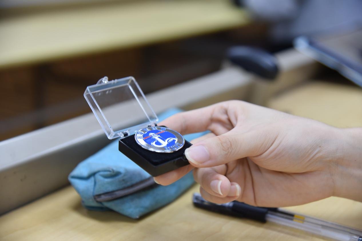 课程伊始,助教老师向每位参课学生赠送了课程定制的科学家精神徽章和文化衫,以期让同学们能够更直观地感受到课程意在传递的科学家精神内涵,增强民族自豪感与认同感。