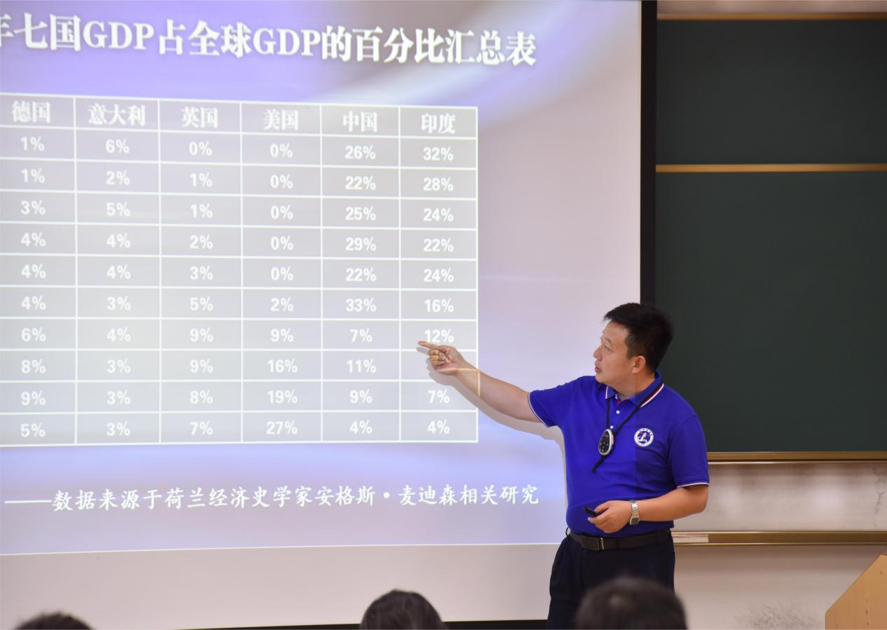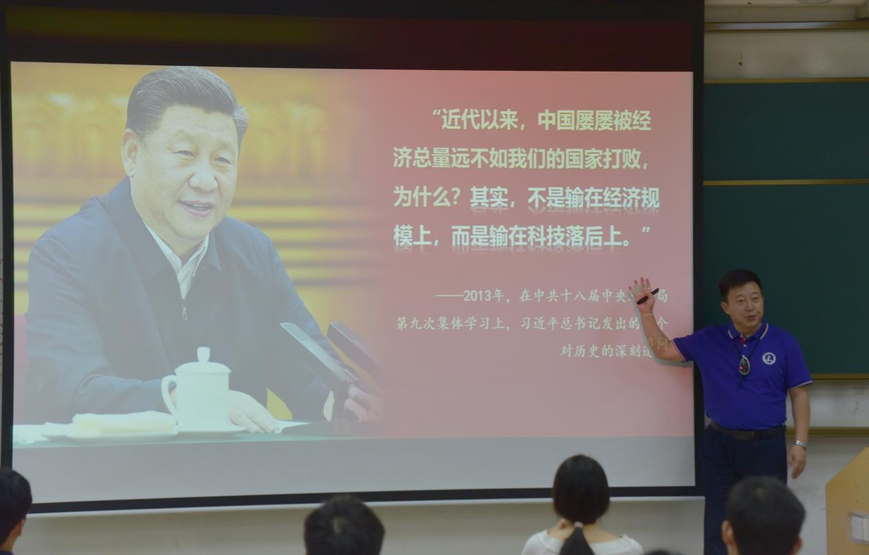 课上,李建国老师从“科技创新决定大国兴衰”“中国实现科技自立自强的通关之路”“全面落实高水平科技自立自强战略部署”三部分进行课程讲授。他以习近平总书记2013年在中共十八届中央政治局第九次集体学习上发出的对历史的深刻追问导入课程,通过对近代历史的深入剖析和详实的数据对比,从历史与现实两方面让同学们深刻意识到“中国要强盛、要复兴,就一定要大力发展科学技术,努力成为世界主要科学中心和创新高地”。