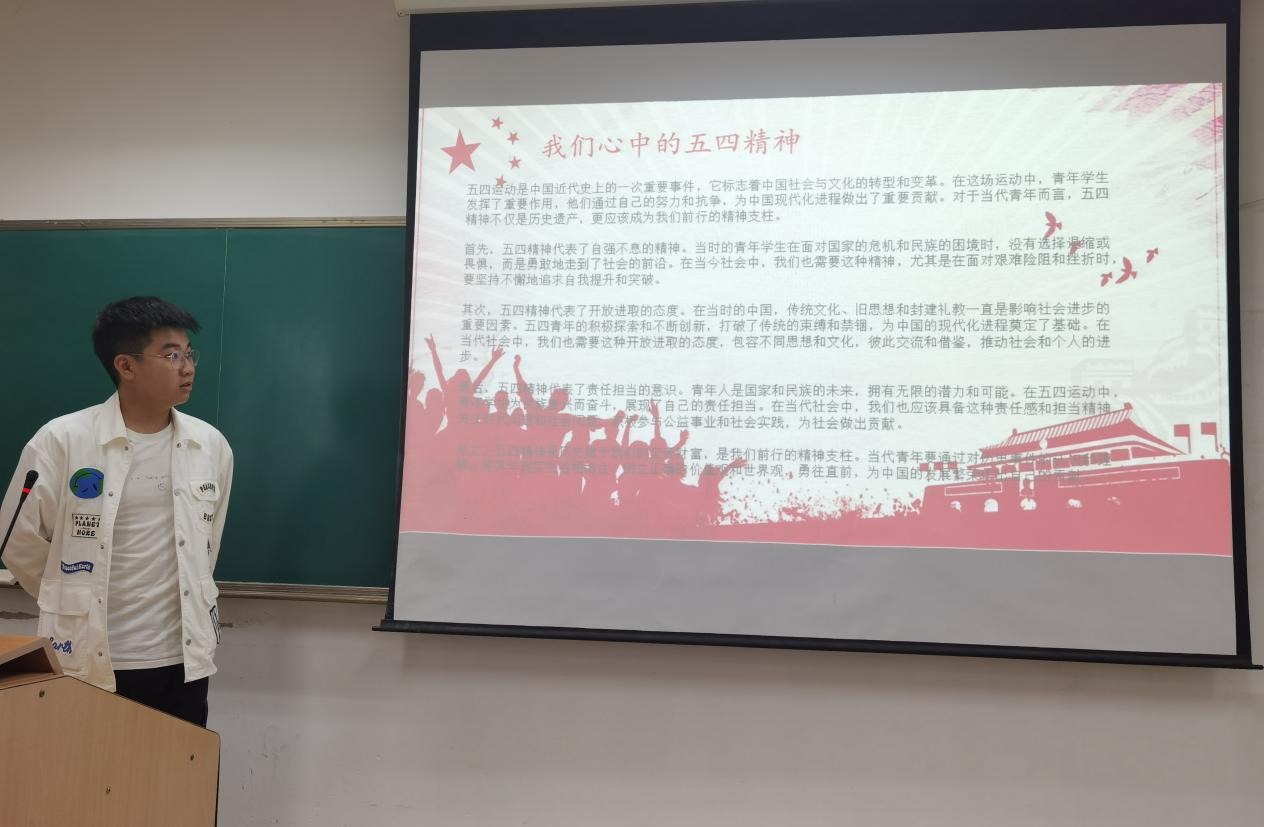 以五四精神的内涵与传承、五四运动中的历史人物和当代杰出青年代表等为切入点,同学们在做好前期资料搜集、小组研讨和问卷调查等工作的基础上,采用视频或演讲等形式进行课堂交流汇报,他们生动诠释了以爱国、进步、民主、科学为核心的五四精神的内涵与意义。