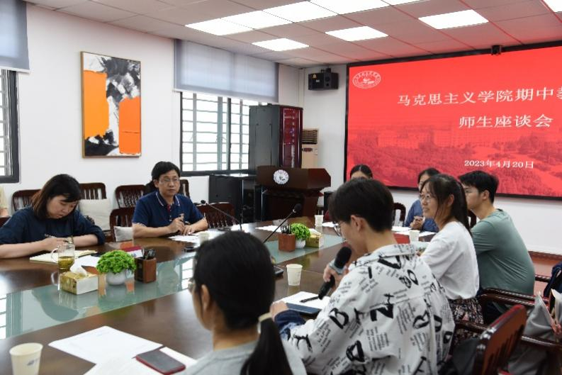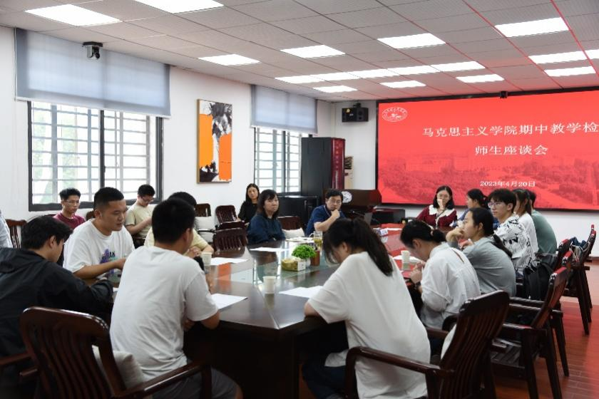 为学习贯彻习近平新时代中国特色社会主义思想主题教育,满足学生成长发展的需求和期待,进一步提升思政理论课的教学质量和教学水平,4月20日下午,我院召开本科教学期中检查座谈会。院党委书记刘雅然、各教研室教师代表和各院本科生代表参加会议,副院长沈昊驹主持会议。