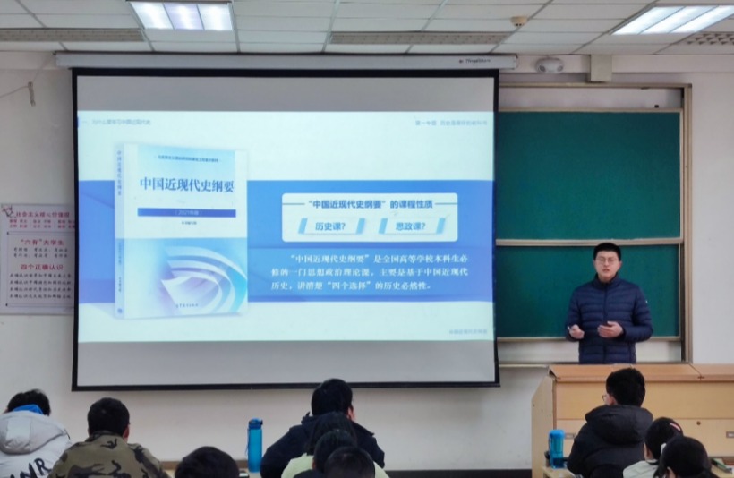 阳春三月,7000余名大一学生迎来新学期的第一堂思政课——《中国近现代史纲要》。为了上好“开学第一课”,提升师生课堂“交互感”,引导同学们以史鉴今、勇毅前行,马克思主义学院中国近现代史纲要教研室全体教师围绕《中国近现代史纲要》课程教学内容,优化教学设计,运用新媒体技术、互动式教学方法,构建沉浸式教学环境,帮助同学们从历史中汲取智慧和力量。