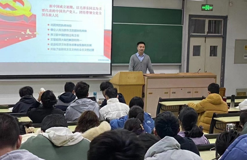 马瑞老师在课堂上主要围绕“为什么要学习中国近现代史、如何认识中国近现代史的分期、如何把握中国近现代史纲要的学习目的和要求”三个方面展开讲授。通过结合史实及影像资料,向学生们立体地展示了中国近现代历史与中国共产党百年奋斗历史的共同主题——实现中华民族伟大复兴。
