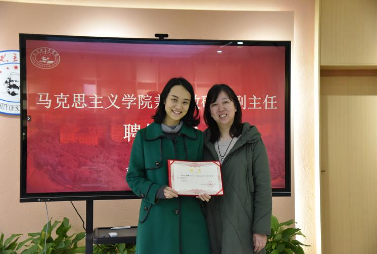 会议伊始,刘雅然依次为孙伟、王曦、彭鹤翔、杨柳、何陈晨、张誉千、欧阳真等7名兼职教师颁发聘书。