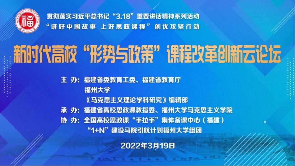 本次论坛旨在深入贯彻落实习近平总书记“3.18”重要讲话精神,不断深化高校“形势与政策”课程改革创新,更好发挥高校思政课程立德树人的根本作用。论坛开幕式由福州大学党委副书记张星致欢迎辞,福建省委教育工委副书记林生致辞。北京大学孙蚌珠教授、中国人民大学张雷生教授、中央马克思主义理论研究和建设工程首席专家郑传芳教授、上海交通大学邢云文教授、中国地质大学(北京)杨峻岭教授做主旨报告。来自全国二十五家高校的马克思主义学院院长、书记、相关专家学者以线上方式参与论坛讨论并做主题报告。