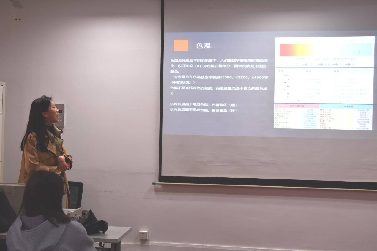 随后,李舒霓同学以“摄影基础培训”为主题,向大家依次介绍白平衡、景深、光圈、感光度等摄影术语,并分析了多种构图方式,如引导线构图、三分+水平构图、前景+纵深构图等。她分享道,我们在拍摄前要对自己报道的主题有明确的定位,这样才能够抓住真实、明确地反映新闻事实的瞬间。同时,一些令人难忘的细节在新闻摄影中具有打动人心的力量,我们可以通过它来引起读者的共鸣。摄影记者还应具备敏锐的思维及应变能力,做好随时按下快门的准备。面对一些持续时间较长的重大新闻事件,我们要提前做好策划,把握重要的时间节点,不打无准备之战。