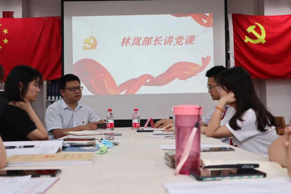 为引导广大毕业生党员不忘初心,牢记使命,在未来工作岗位上更好地贡献智慧与力量,6月21日上午9时,我院在东七楼207会议室开展最后一次党课暨“永葆初心,筑梦远航”毕业生党员教育活动。学校党委组织部副部长林岚、学院党委副书记兼副院长王明飞、辅导员王茜以及我院2021届全体毕业生党员参与了此次活动。