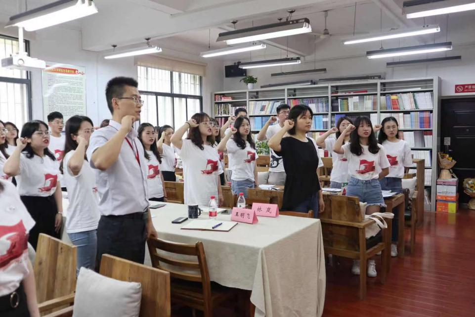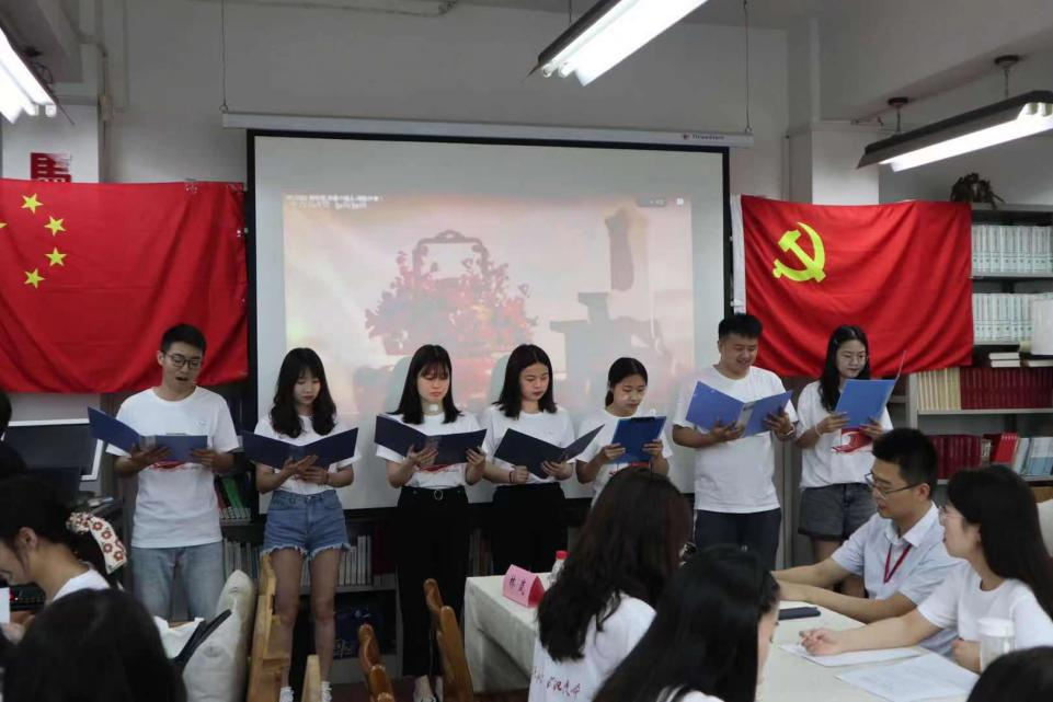 辅导员王茜首先带领大家重温入党誓词,全体毕业生党员起立宣誓。接着毕业生党员以“回忆支部生活”为主题展开小组分享。