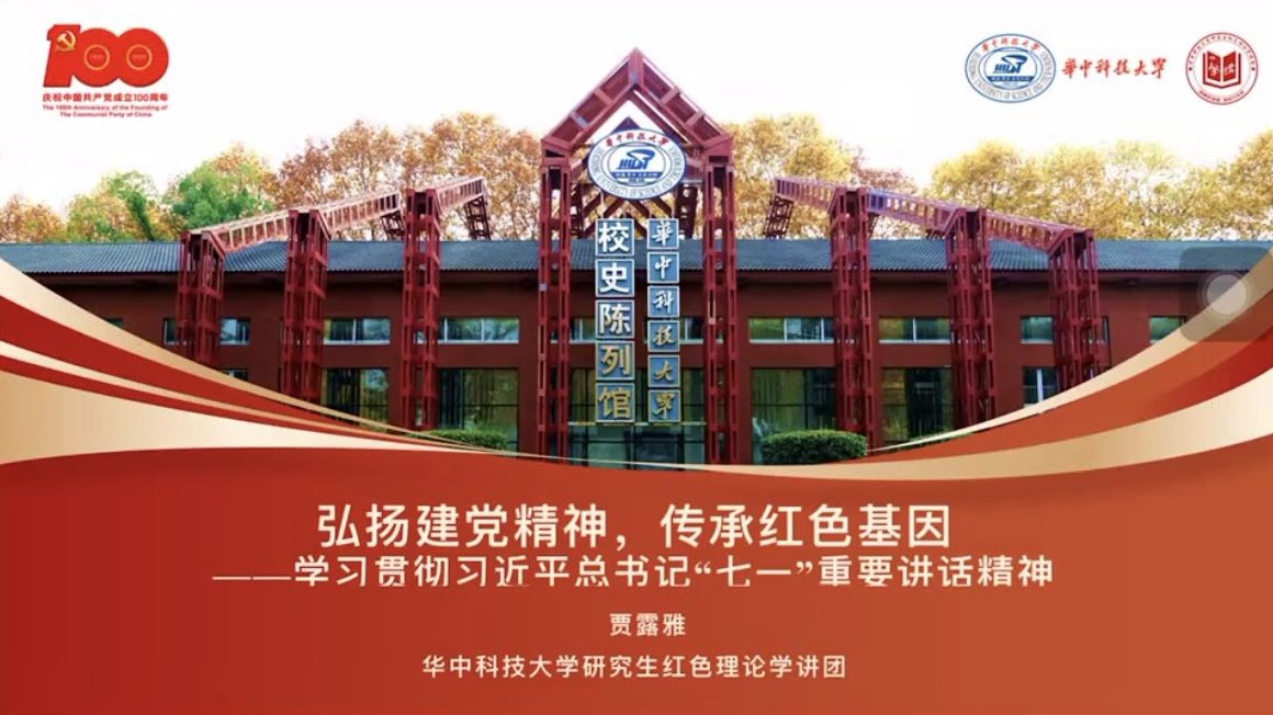 接着,由红色理论学讲团副团长、马克思主义学院的贾露雅带来题为《弘扬建党精神,传承红色基因——学习贯彻习近平总书记“七一”重要讲话精神》微党课。她从中国共产党的精神之源——伟大建党精神出发,结合陈望道翻译《共产党宣言》、李大钊、夏明翰、陈延年等人英勇就义的故事对坚持真理、坚守理想,践行初心、担当使命,不怕牺牲、英勇斗争,对党忠诚、不负人民的伟大建党精神的丰富内涵进行了深入浅出的阐释。除此之外,“一百年来,中国共产党弘扬伟大建党精神,在长期奋斗中构建起中国共产党人的精神谱系,锤炼出鲜明的政治品格。”以伟大的精神谱系中贯穿的鲜明主线——中国共产党为中国人民谋幸福、为中华民族谋复兴为出发点,以建党精神为源,以建党精神在革命、建设和改革三个不同时期的时代表达——长征精神、西柏坡精神、焦裕禄精神、抗疫精神为延展,结合于最近的河南防汛救灾一线的实况,了解伟大精神背后的感人故事,走进中国共产党人的精神世界,我们青年学子要弘扬建党精神,传承红色基因,增强做中国人的志气、骨气和底气。
