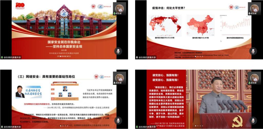 国家安全是安邦定国的重要基石,为深入学习领会习近平总书记对总体国家观的论述,增强支部党员对贯彻落实总体国家安全观重要意义的认识,2021年8月25日中午12:30,马克思主义学院2019级硕士生第二党支部以腾讯会议为载体召开了“国家安全,你我同行”8月线上主题党日活动。本次会议由支部书记党梓赫主持,邀请了学讲团团长徐东辉同志,全体党员和积极分子共同参与。