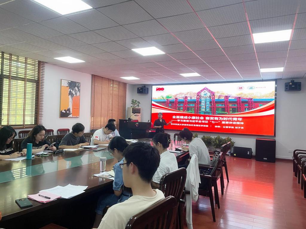 全面建成小康社会取得伟大成就,高质量发展硕果累累。会议伊始,红色理论学讲团讲师刘子灵带来题为“全面建成小康社会 奋发有为时代青年—学习贯彻习近平总书记“七一”重要讲话精神”的微党课。通过对身边和自己的故事的举例、图片、视频、数据等方式,生动活泼地为我们讲述了全面建成小康社会的内涵、小康社会的生动写照、奋力实现现代化的方向等,通过多样的讲授方式,在增强课堂吸引力的同时能唤起学生的情感共鸣。