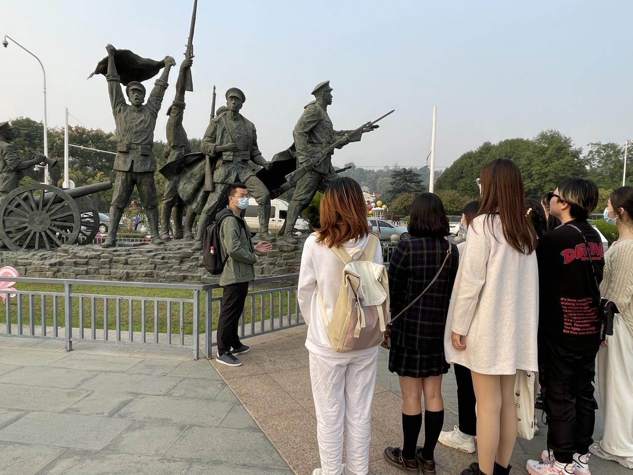 在展馆最核心的基本陈列展厅里,一件件珍贵的展品和文物,再现了那个风雨如晦的年代,也让人们真切感受到中国人民奋起反抗,仁人志士奔走呐喊,探求救国救民道路的时代伟力。马克思主义学院2102班党支部书记张悦感慨道,穿梭于这些英烈的雕像群中,我们能够深刻地感受到为探索救国救民道路,无数仁人志士勇于牺牲的革命精神。