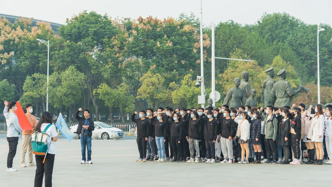 参观结束后,在辛亥革命纪念馆前,在赵欢教授的带领下,全体党员同志们以及有志入党的同学高举右手,面对党旗庄严宣誓,重温自己对党忠诚的誓言以及为党的事业奋斗终生的初心使命。