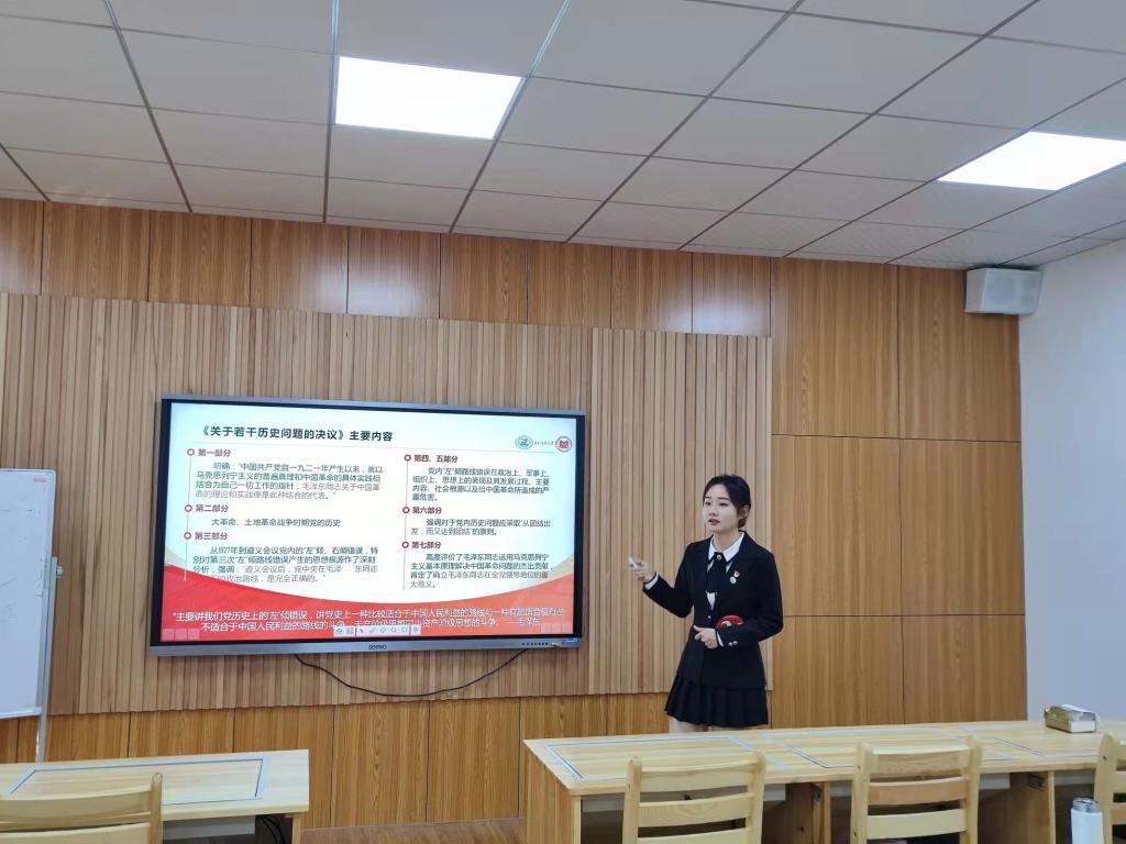 在比赛过程中,同学们精神饱满,有层次有重点地进行讲授,思路清晰,语言生动,涉及到中共一大、实践与认识的关系、人民群众的作用、伟大建党精神等多个主题。根据课程特点,同学们不仅深入挖掘了课程中蕴含的思政元素和所承载的育人功能,而且融入了家国情怀、社会责任、青年使命与担当等核心要素,展现了我院学子深厚的学科功底,呈现了一场视听盛宴。最后,经过一上午的激烈角逐,张悦、李语譞、李叶纯等10位同学晋级决赛。