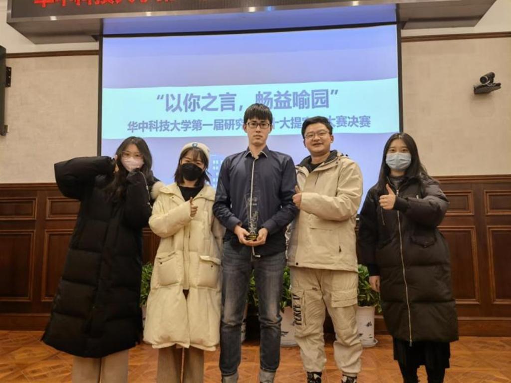 决赛答辩现场,经过激烈角逐和各院系研究生代表投票等环节,最终我院荣获华中科技大学第一届研究生“十大提案”奖。
