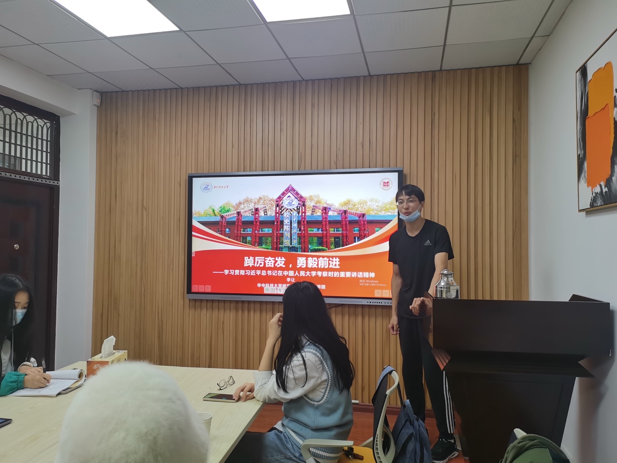 支部书记杨可心同志对本次活动做总结发言,并带领支部成员一同学习了“习近平总书记在庆祝中国共产主义青年团成立一百周年大会上重要讲话”。