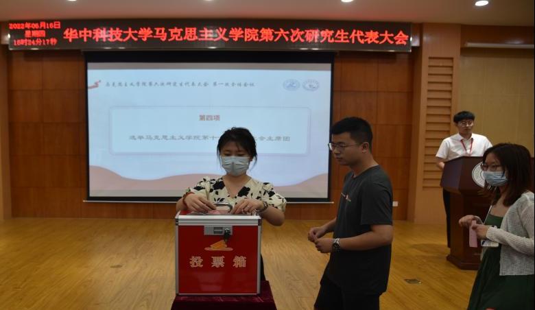 大会经两论差额投票选举,产生了第十六届研究生会主席团。各最终确定李语譞、尚潇雨、侯怡聪当选马克思主义学院第十六届研究生会主席团成员。接着,大会选举产生了马克思主义学院出席华中科技大学第九次研究生代表大会代表:杨可心、汪建辉、徐东辉。