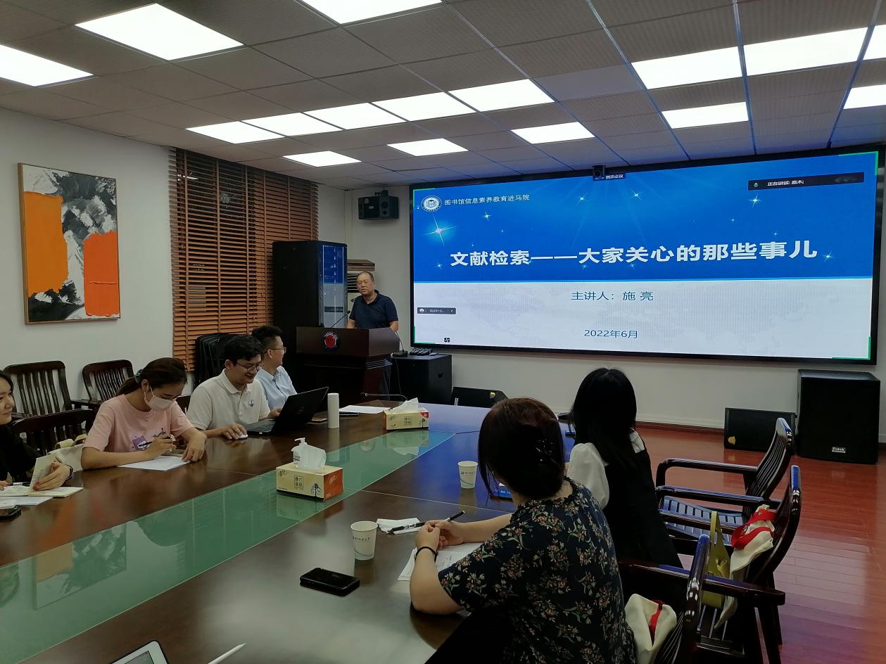 为更好服务师生诉求,提升广大同学学术文献检索能力,更好助力论文写作,2021级硕士生第一、第二党支部联合举办文献检索专题讲座,特邀华中科技大学图书馆施亮老师于6月27日在东七楼203室为全院硕博生做《学术检索------大家关心的那些事儿》主题讲座。华中科技大学图书馆人文社科组学科馆员涂文艳老师、孙晗老师出席会议并为同学们答疑解惑,马克思主义学院党委副书记王明飞老师主持会议,线上线下共100余名硕博士参加。