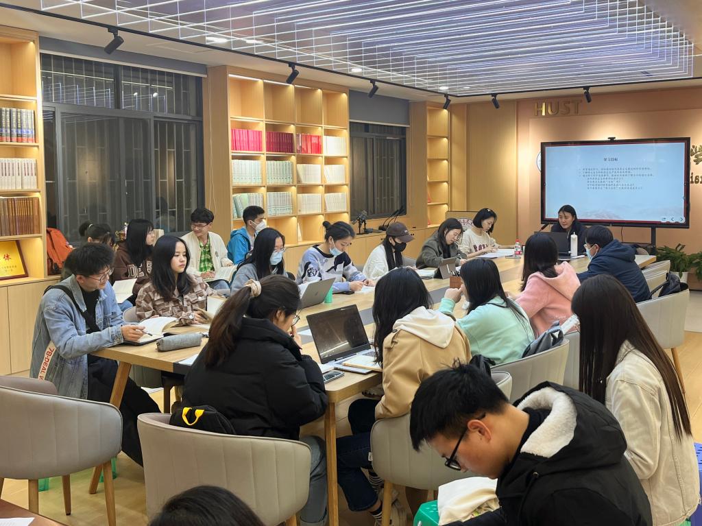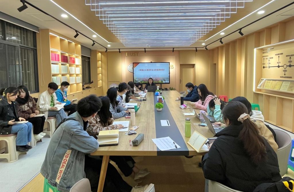 3月30日晚7点,马克思主义学院于东七楼202资料室举办第28期“马语者”悦读会。我院青年教师李思思就《帝国主义是资本主义的最高阶段》一书进行导读,近40名研究生参与本次活动。