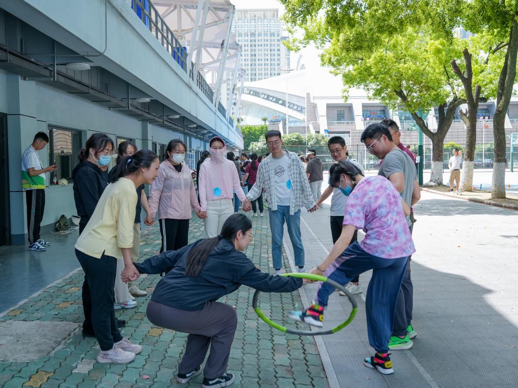 紧张的拔河比赛之后,各个队伍分别参加了趣味盎然的游戏项目,分别是一圈到底、飞盘嘉年华、筷子夹球、无敌风火轮、沙场点兵和套圈。各个比赛同时进行,热闹非凡。活动过程中各组交错比拼,欢声笑语不断。