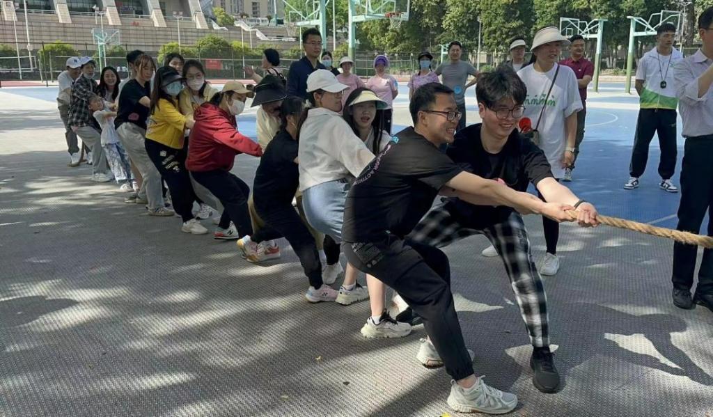 在简单的热身过后,运动会迎来了第一个项目——拔河比赛。马克思主义基本原理、马克思主义中国化研究、思想政治教育、党的建设和博士生5个党支部队伍轮流进行比赛。