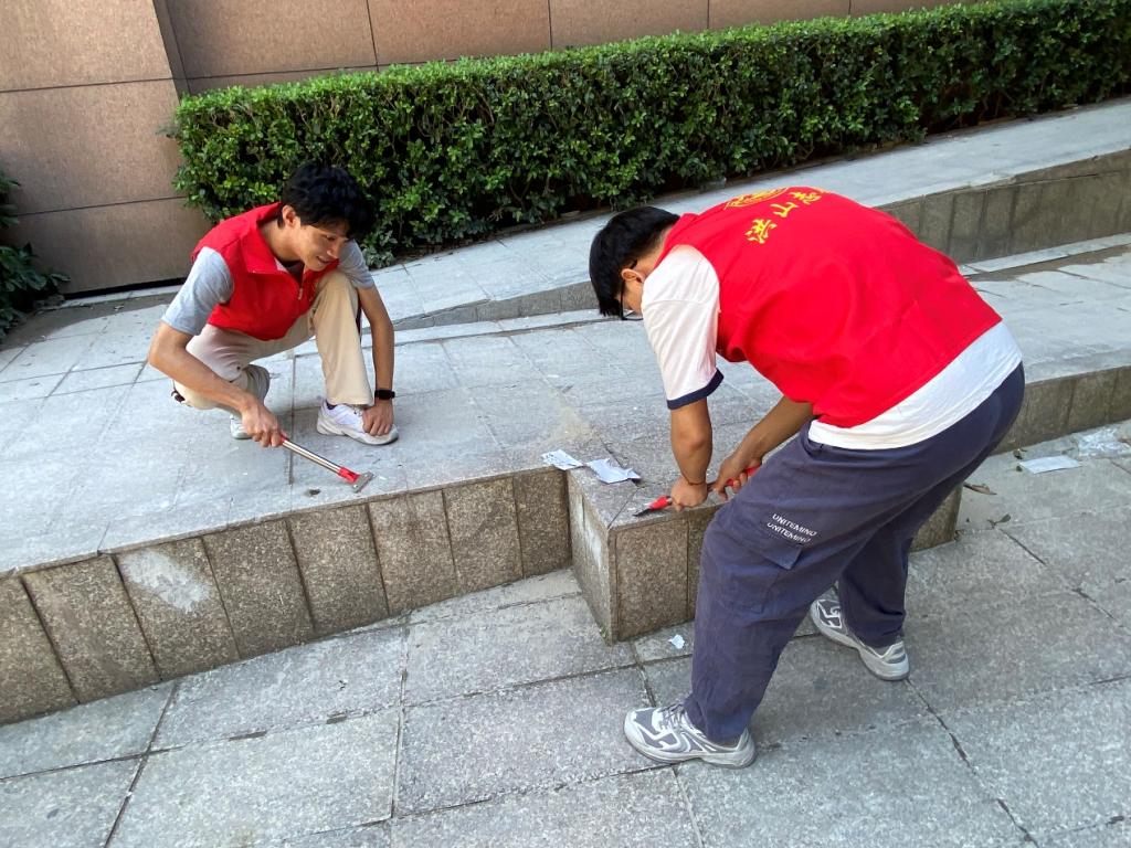 热烈的阳光挡不住志愿者们的热情和干劲,大家不畏艰辛、不惧脏污,团结一致、分工协作,将活动区域内的所有卫生死角都清理干净,使社区面貌焕然一新。