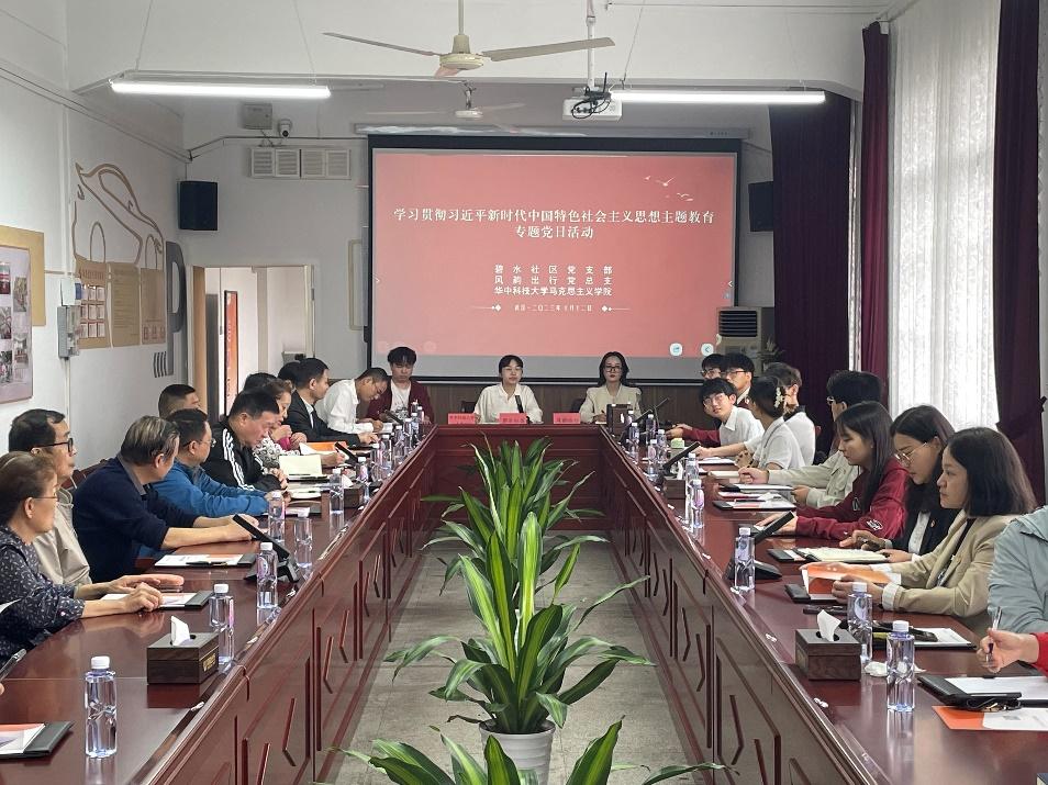 为推动党建特色品牌建设和工作创新,不断构建“一院一社”共建新格局,10月12日上午,马克思主义学院联合碧水社区党支部和风韵出行党总支在邮科院会议室内开展学习贯彻习近平新时代中国特色社会主义思想主题教育专题党日活动。本次专题党日活动由碧水社区党支部书记程蓉主持,学院10名学生骨干参加专题党日活动。