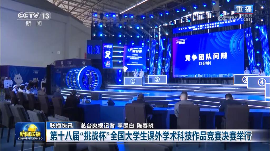 本次比赛还获得了各级媒体的广泛关注。10月28日,中央电视台《新闻联播》播出新闻《第十八届“挑战杯”全国大学生课外学术科技作品竞赛决赛举行》,我院学子颜欣妍、周一航入镜。