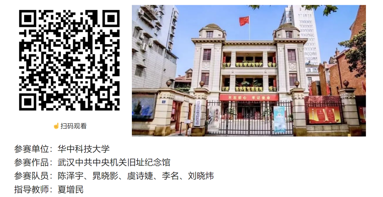 大革命时期,革命中心由珠江流域转到长江流域,武汉成为“红色的首都”。顺应革命形势的发展,中共中央迁至武汉,领导了轰轰烈烈的反帝反封建革命斗争。中共中央在武汉期间,召开了中共五大和八七会议,做出了发动南昌起义和秋收暴动等一系列影响历史进程的重大决策,实现了伟大的历史转折。作品立足武汉中共中央机关旧址纪念馆,在夏增民老师的指导下,团队成员陈泽宇、虞诗婕、李名、晁晓影、刘晓炜以大革命时期中国共产党在武汉的革命历程为切入点,采用BOPPS体验式教学模型导入全景超高清现场,挖掘相关史料,打造红色全景课堂,最终从来自全国21个省(自治区、直辖市)69所高校提交的200余件作品中脱颖而出。