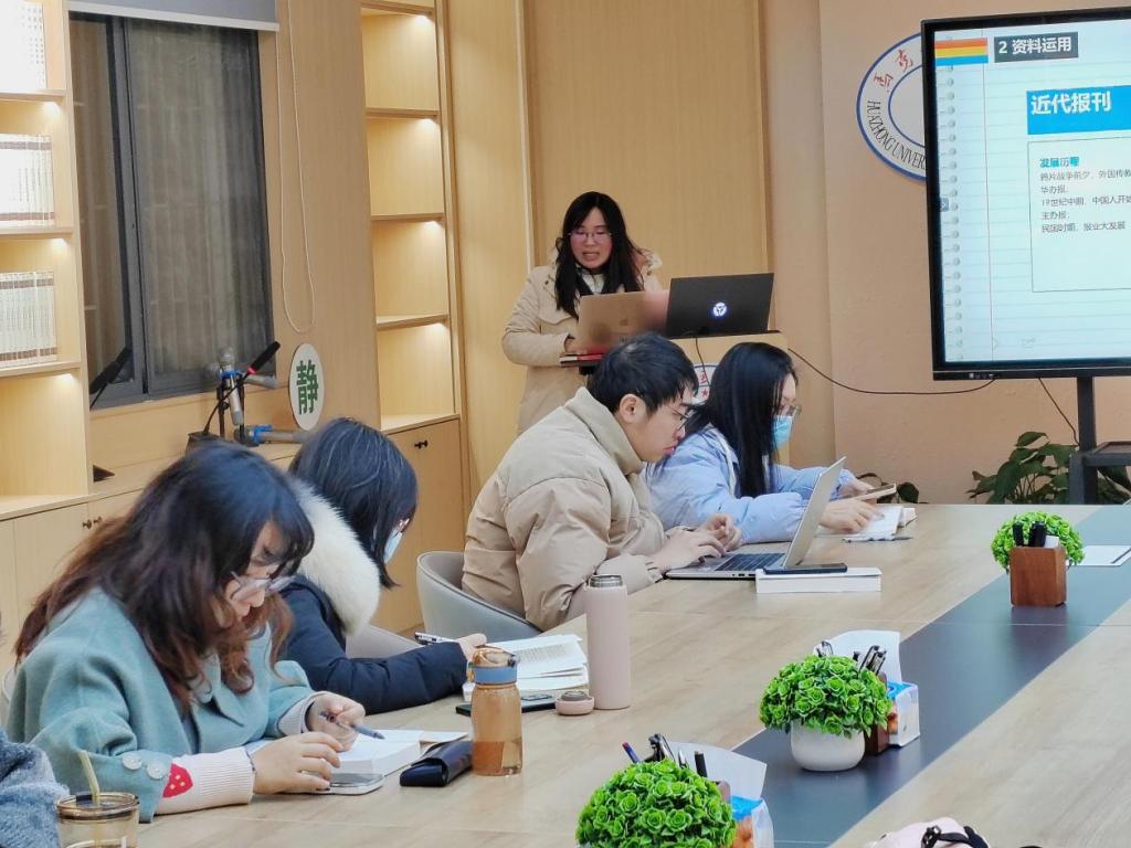 首先,高作楠介绍了作者生平和《中国的内战》中译本的两个版本。随后,通过讲解作者在书中对大量资料和文献的运用,她进而向同学们强调了在研究中使用报刊的重要性,并带领大家一同了解了近代中国较有影响力的报刊,如《申报》《中央日报》《大公报》《新华日报》《新闻报》等。高作楠强调,在当时社会背景之下,革命思想大多通过报纸传播,因此报纸材料在研究中起着重要的作用。