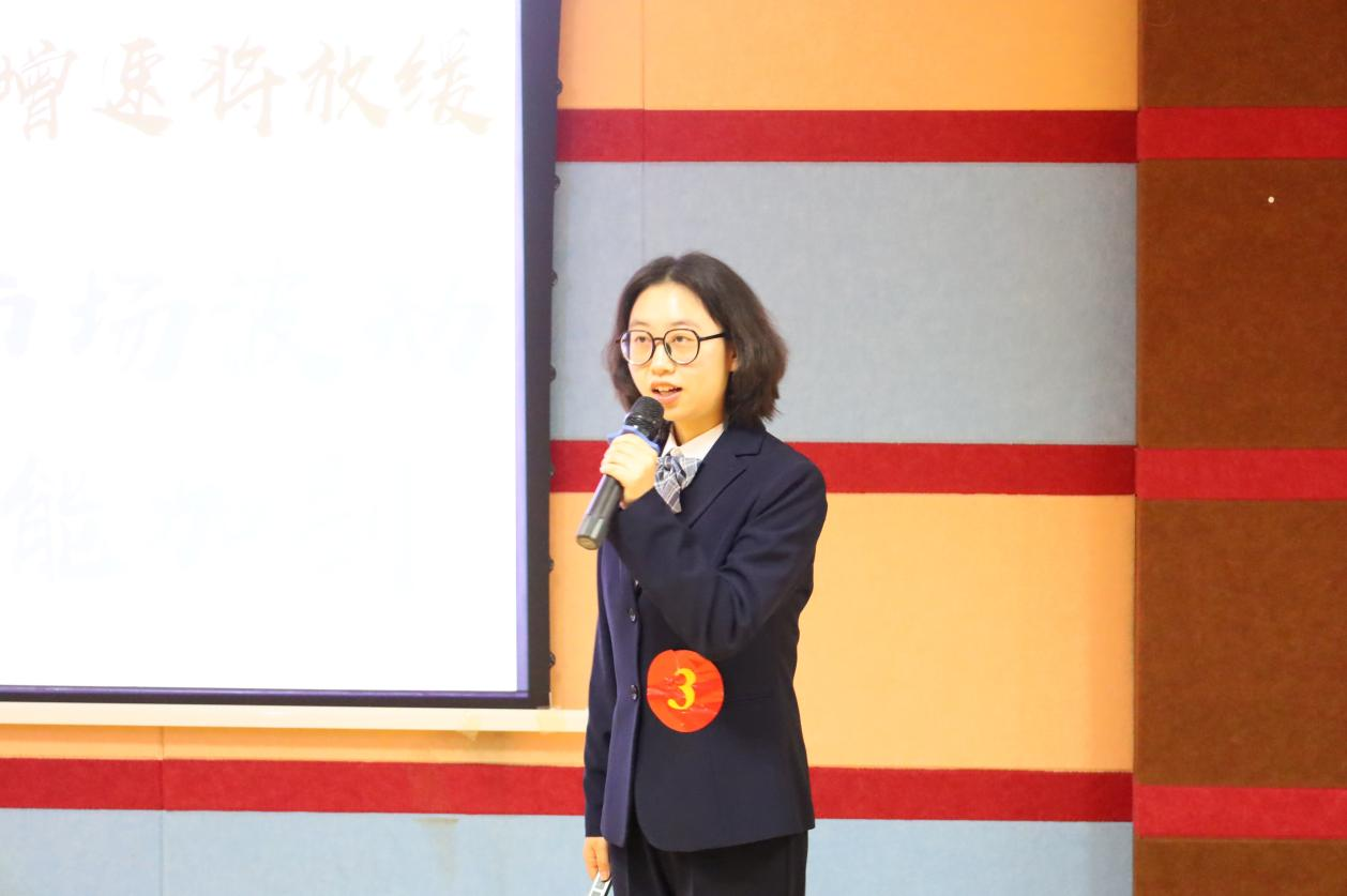 杨培妍以《小城背后的发展“大”密码》为题,通过回顾义乌在本世纪发展的历程,带领同学们共同探索义乌“将改革开放进行到底”的发展密码,论证了唯有深入推进改革创新、坚定不移深化改革开放,才能赢得发展的主动权。