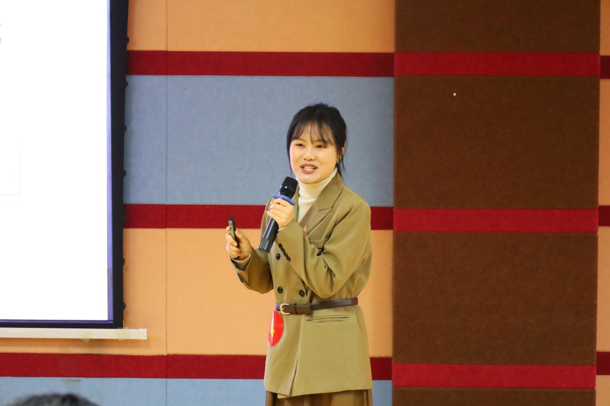 庄佳园以《旗帜鲜明反对历史虚无主义》为题,通过对历史虚无主义的基本内涵和严重危害的生动介绍,警醒大家要牢牢坚持唯物史观,并提出旗帜鲜明反对历史虚无主义的具体举措。
