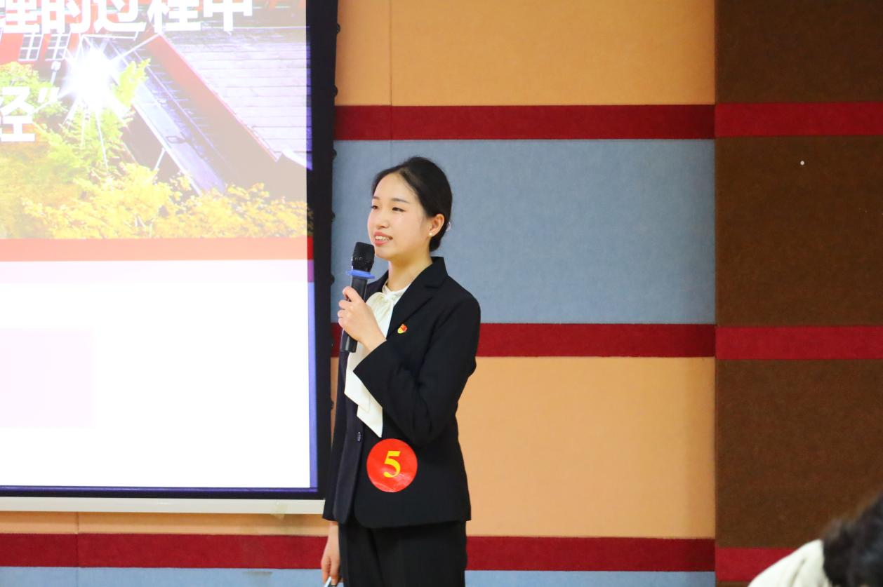 陈辰羽以《否定之否定规律的理解与运用》为题,为大家逐步揭示了“否定”和“否定之否定规律”的内涵,既将具体实例融于讲解,又将习近平文化思想的庞大体系贯穿其中,在循序渐进的解说中加深了大家对否定之否定规律的理解和掌握。