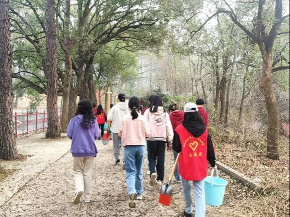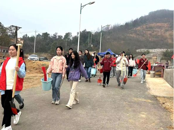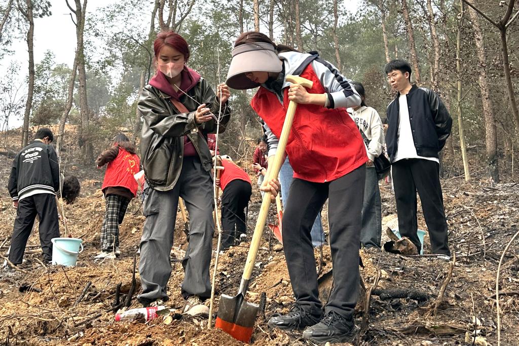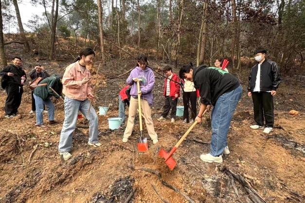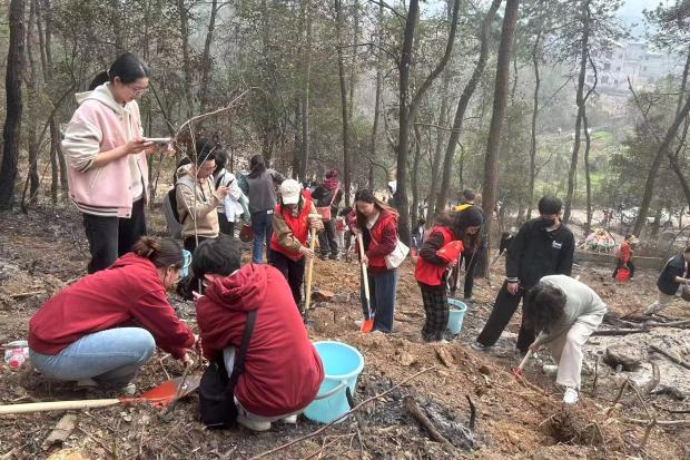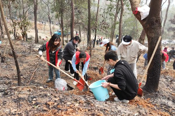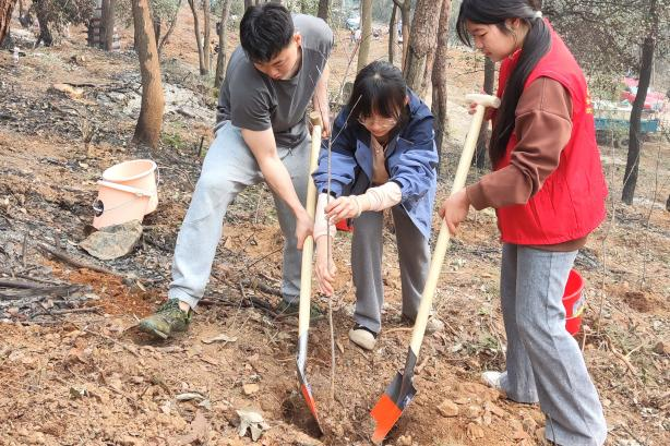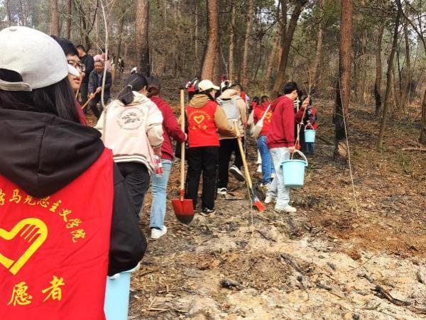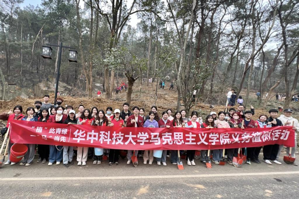 阳春三月万物苏,植树添绿正当时。为深入学习领会习近平总书记关于生态文明建设的最新思想和成果,帮助青年学子更好地了解美丽中国目标,深化对党的生态文明建设的规律性认识,营造增绿、护绿、爱绿的浓厚氛围,在第46个全国植树节到来之际,华中科技大学马克思主义学院研究生会志愿者工作部于3月16日组织40余名同学前往武汉市蔡甸区嵩阳林场开展义务植树活动。学院兼职辅导员、德育助理及各党团支部书记积极响应,与志愿者们携手种下希望之树,为生态文明建设贡献青春力量。