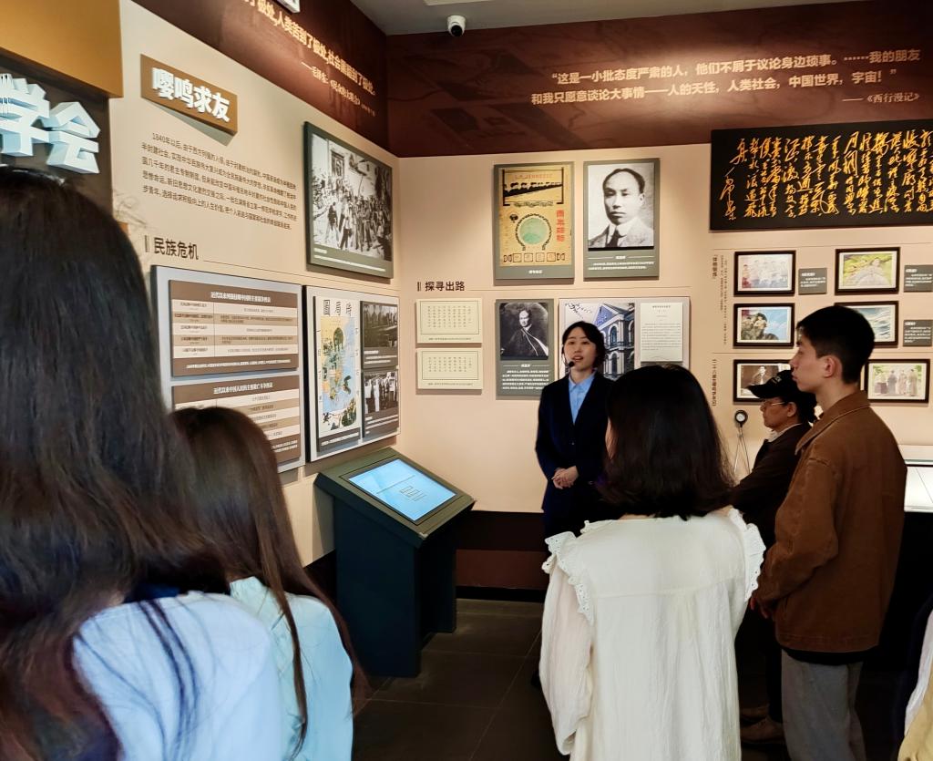 作为中国共产党早期组织的雏形之一,新民学会是五四时期中国重要的革命社团,以“改造中国与世界”为宗旨,担当起传播新思想、激扬新文化的重任,被誉为“建党先声”。同学们跟随讲解员的引导,认真倾听讲解,驻足观看,一同重温了新民学会成立及发展的光辉历程,深切感受到了百余年前中国青年以天下为己任、立志“改造中国与世界”的远大理想抱负,对革命历史有了更为深刻的认识和感情上的共鸣。