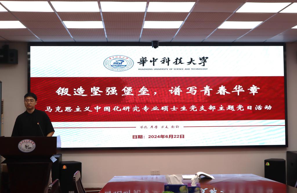 (文字、图片:赵姗琳)为强化支部战斗堡垒建设,发挥党支部“传帮带”纵向设置优势,坚定毕业生党员理想信念,带动支部党员明确自身规划、提升综合素养,6月22日下午,马克思主义中国化研究专业硕士生党支部举办“锻造坚强堡垒,谱写青春华章”主题党日活动。会议由党支部书记陈泽宇主持。