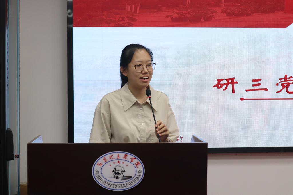 研三党小组组长李若楠代表支部2024届毕业生党员作交流发言。她联系工作和生活实际,分享了在工作中保持初心、在实践中锤炼党性、在服务中践行宗旨的体会和感悟,并表明自己将站好最后一班岗,完成毕业生党员组织关系转接等支部工作安排。