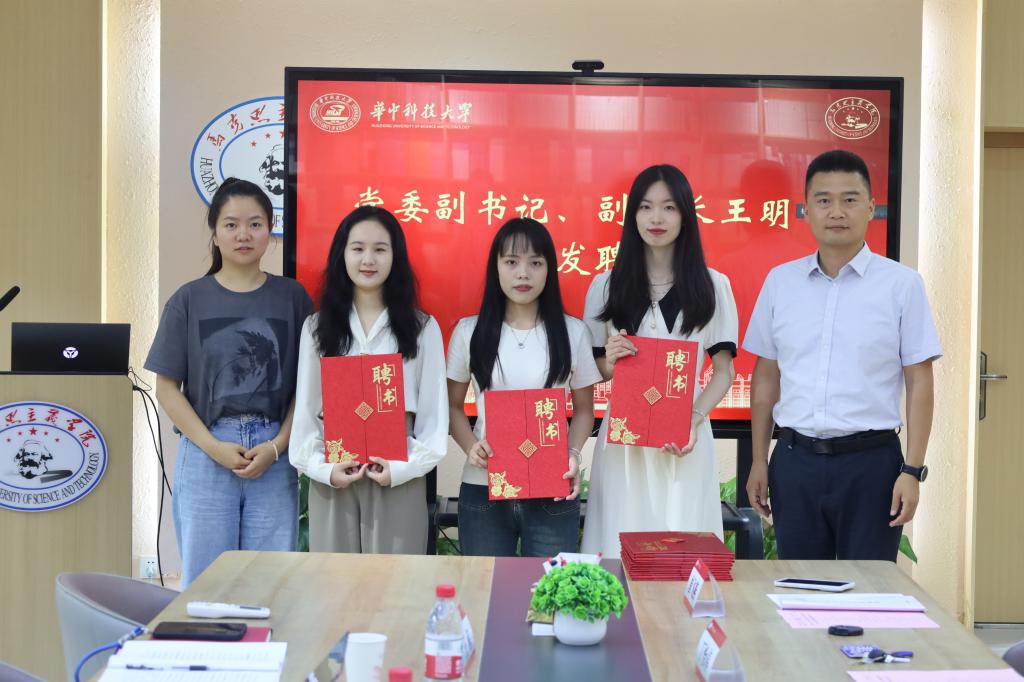 大会第二项,由王明飞、王茜为新闻中心全体成员颁发聘书。