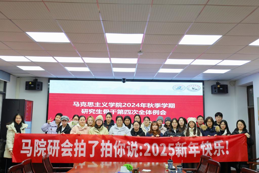 (通讯员:刘宛婷)12月26日中午,马克思主义学院2024年秋季学期研究生骨干第四次全体例会在东七楼203会议室召开。马克思主义学院党委副书记、副院长王明飞,团委书记、辅导员王茜,学生班主任夏语,德育导师蔡超、邱思纯,院研究生会全体成员、院新闻中心代表、院党建工作中心代表参加会议。本次会议由院研究生会主席团成员高也淳主持。