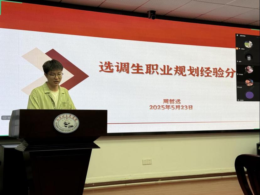 首先,2022级党的建设方向硕士生周哲远详细介绍了自己备考选调生的历程,包括备考初衷、备考过程中的资料搜集与学习计划制定,以及如何平衡学业与备考。他强调了了解报考地区政策的重要性,并分享了一些实用的备考资料和学习方法,还鼓励同学们在备考过程中保持积极心态,合理安排时间,不断提升自己的综合素质。